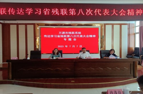 2023年7月7日上午,市殘聯(lián)組織召開傳達學習省殘聯(lián)第八次代表大會精神專題會。市殘聯(lián)黨組書記、理事長張發(fā)平主持會議并講話。市殘聯(lián)黨組成員、副理事長熊小玲,黨組成員、支部書記茍云軍出席會議。市殘聯(lián)全體干部職工,各鄉(xiāng)鎮(zhèn)(街道辦)殘聯(lián)理事長和專職委員參加會議。