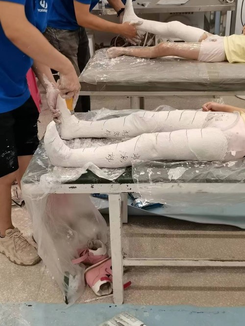 活動現場,技術人員認真詢問和觀察殘疾兒童身體狀況,并根據需要矯正部位進行評估、測量、打模、取樣、記錄,為符合條件的殘疾兒童量身定制合適的矯形器。同時,向殘疾兒童家長詳細講解矯形器的種類、功能和使用維護過程中的一些注意事項,指導家長們正確使用矯形器,并耐心解答家長們提出的問題。此次活動為80余名殘疾兒童進行矯形器驗配。
