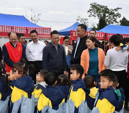 (圖為于杰查看殘疾兒童篩查現(xiàn)場(chǎng))