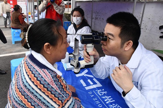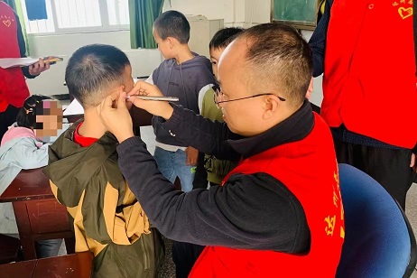 (圖為視力殘疾篩查組現(xiàn)場(chǎng))