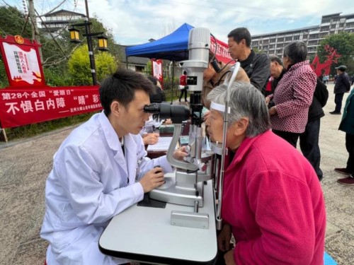 (圖為視力殘疾篩查現(xiàn)場(chǎng))