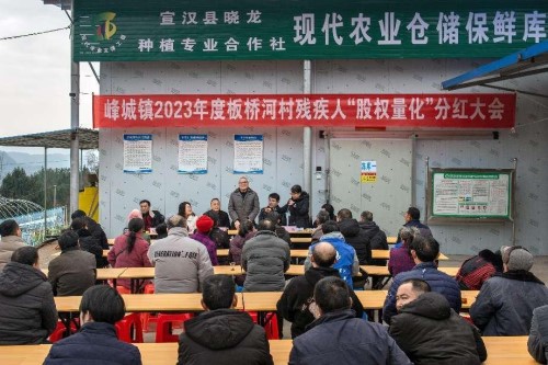 2024年1月29日,宣漢縣峰城鎮(zhèn)2023年度殘疾人“股權(quán)量化”分紅大會在板橋河村曉龍種植專業(yè)合作社隆重舉行,48名殘疾人領(lǐng)到了保底分紅及務(wù)工收入近30萬元。