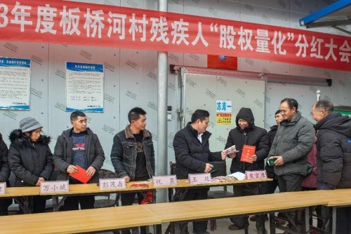 今年是板橋河村實施殘疾人“股權(quán)量化”項目的第三個年頭,脫貧戶按殘疾等級和所持股金的不同分為三個等級,分別領(lǐng)取387元、225元和202.5元的保底分紅。在現(xiàn)場,殘疾人不但領(lǐng)到了“股權(quán)量化”分紅資金,還領(lǐng)到了在合作社的務(wù)工收入。“股權(quán)量化”保底分紅資金雖不多,但卻飽含著黨和政府對殘疾人的關(guān)心、關(guān)愛和幫助,讓殘疾人能夠多一份收益,多一份保障,多一份幸福。
