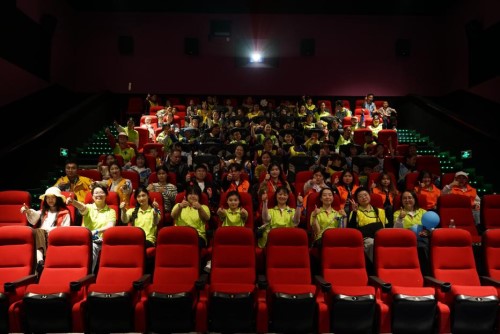(圖為觀影和點(diǎn)亮藍(lán)燈現(xiàn)場)