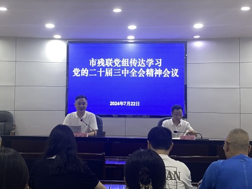 7月22日,市殘聯(lián)黨組召開會議傳達學習黨的二十屆三中全會精神,并研究部署貫徹落實措施。市殘聯(lián)機關各科(室)及直屬單位負責人參加會議。市殘聯(lián)黨組成員、副理事長唐琳彬主持會議并講話。