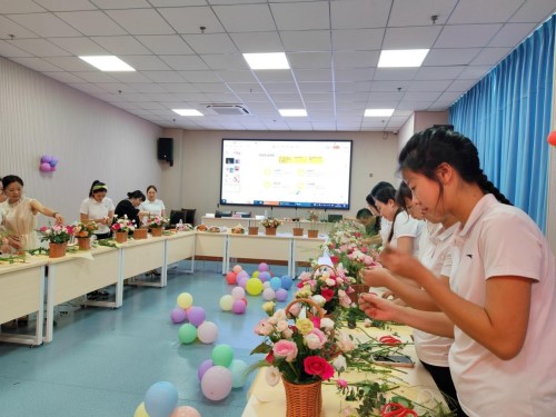 活動最后,全體干部職工在花藝?yán)蠋煹闹笇?dǎo)下,進(jìn)行了花藝沙龍活動,學(xué)習(xí)中國插花傳統(tǒng)技藝。