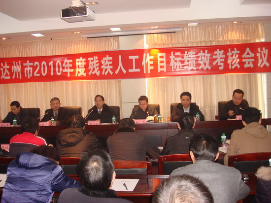 12月28日-29日,達州市2010年度殘疾人工作目標績效考核會議在宣漢縣殘聯(lián)召開。市殘聯(lián)各科室及直屬單位負責人,各縣(市、區(qū))殘聯(lián)分管目標管理的副理事長和辦公室主任參加了會議。市殘聯(lián)黨組書記、理事長廖小云出席會議并作重要講話。