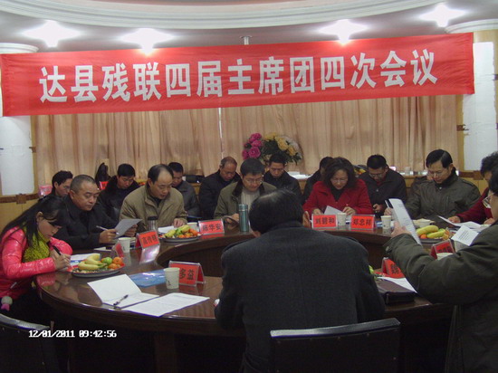 1月12日上午,達縣殘聯(lián)四屆主席團第四次會議在達縣四套班子綜合辦公樓13樓縣殘聯(lián)會議室隆重召開?h殘聯(lián)四屆主席團主席、副主席、委員以及縣殘聯(lián)機關(guān)有關(guān)人員共40余人參加會議。會議由縣委組織部副部長、主席團副主席劉碧和主持。