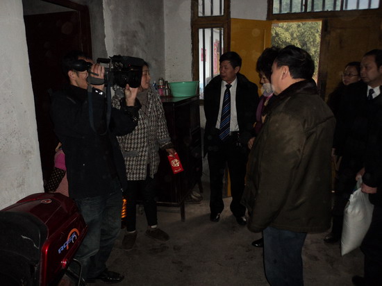 2011年1月17日下午,竹城寒風(fēng)交加,雪花飄飄,在新春佳節(jié)來(lái)臨之際,縣人大常委會(huì)副主任劉軍,政協(xié)副主席魏善清,在四川省興鑫房地產(chǎn)有限公司董事長(zhǎng)張傳坤、總經(jīng)理白恒明等同志的陪同下,帶領(lǐng)竹陽(yáng)鎮(zhèn)政府及社區(qū)和殘聯(lián)等部門(mén)負(fù)責(zé)人,來(lái)到城西鄉(xiāng)和竹陽(yáng)鎮(zhèn)新華社區(qū)等看望黃小桃(肢體一級(jí))、靳德惠(聽(tīng)力殘疾人)、劉代文(肢體一級(jí))等七位殘疾人,并代表縣委、縣政府對(duì)殘疾人的關(guān)愛(ài)之情,送上了大米、油及慰問(wèn)金(折合人民幣5000余元)。