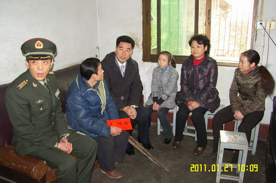 李書記一行來到楊朝文家,親切的詢問楊朝文殘疾情況,家庭收入、生活情況,孩子的學(xué)習(xí)等,并對(duì)楊朝文全家深情的說,春節(jié)快要到了,今天我們一行代表市委、市政府來向你們?nèi)野輦(gè)年,并通過你們向全市的殘疾人朋友致以新春的祝福,祝大家新年快樂,家庭幸福!同時(shí)李書記還特別叮囑隨行的市財(cái)政、民政和殘聯(lián)等部門領(lǐng)導(dǎo),要多關(guān)心象楊朝文這樣的貧困殘疾人家庭,關(guān)心他們的收入和生活、子女的學(xué)習(xí)和受教育等,并對(duì)楊朝文的女兒楊忠坪小朋友說:“你一定要好好學(xué)習(xí),希望你將來考上大學(xué),成為對(duì)國(guó)家、對(duì)社會(huì)有用的人才,有什么困難我們會(huì)隨時(shí)關(guān)心和幫助你的!